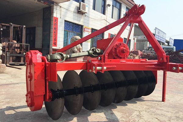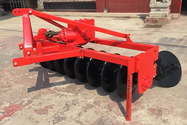 驅(qū)動(dòng)圓盤犁采用拖拉機(jī)后三點(diǎn)懸掛機(jī)構(gòu)進(jìn)行掛接,機(jī)具在工作過程中通過拖拉機(jī)后動(dòng)力輸出軸(PTO)將動(dòng)力傳遞到圓盤犁齒輪箱中,來驅(qū)動(dòng)圓盤犁進(jìn)行旋轉(zhuǎn)。該驅(qū)動(dòng)圓盤犁主要適用于水田耕作,具有不纏草,作業(yè)質(zhì)量高,工作效率高的特點(diǎn)。